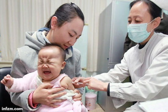 2011年10月28日,在山西省太原市妇幼保健院,医生正在给幼儿注射疫苗。(CFP/图)